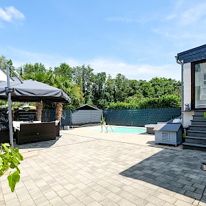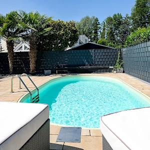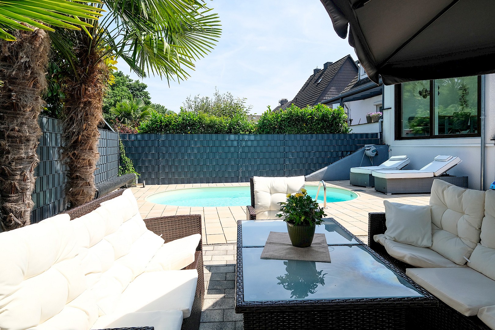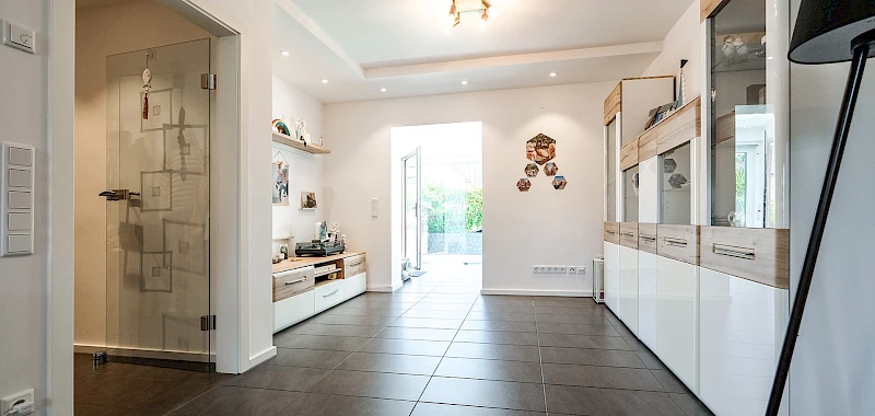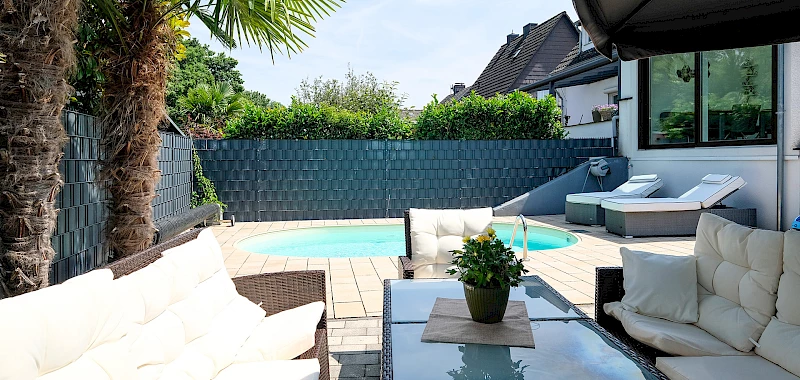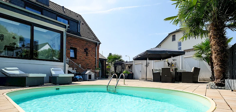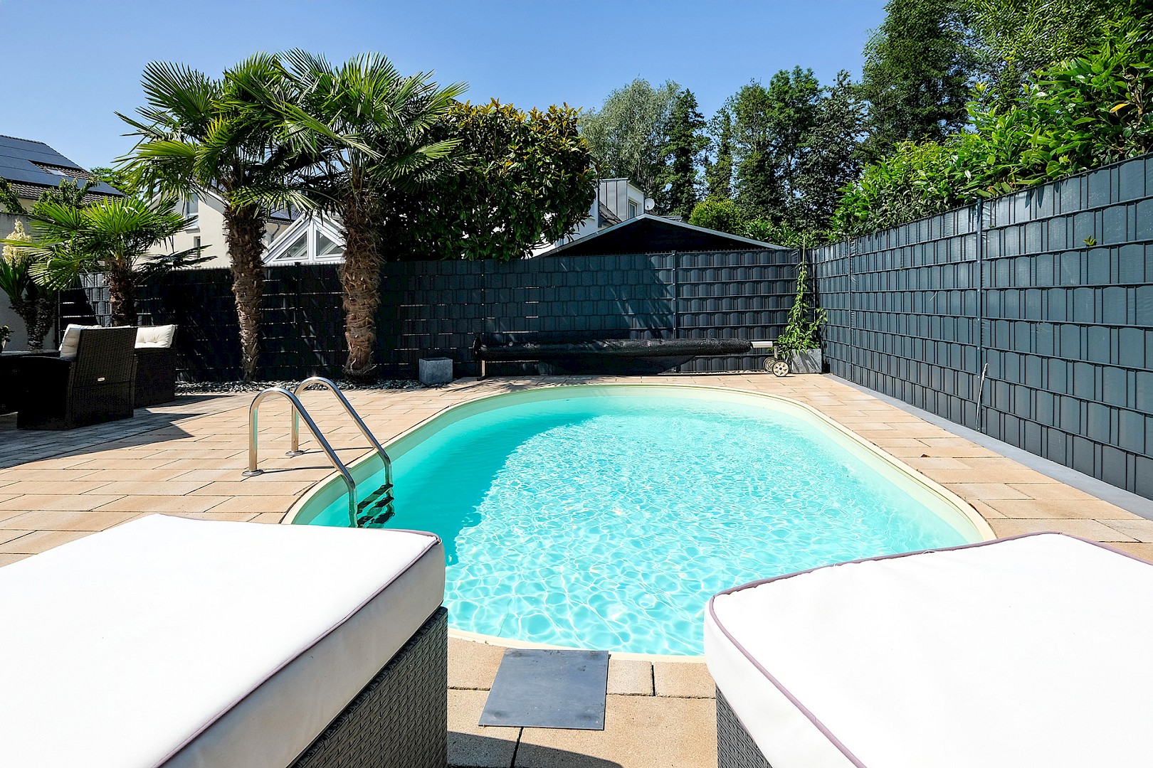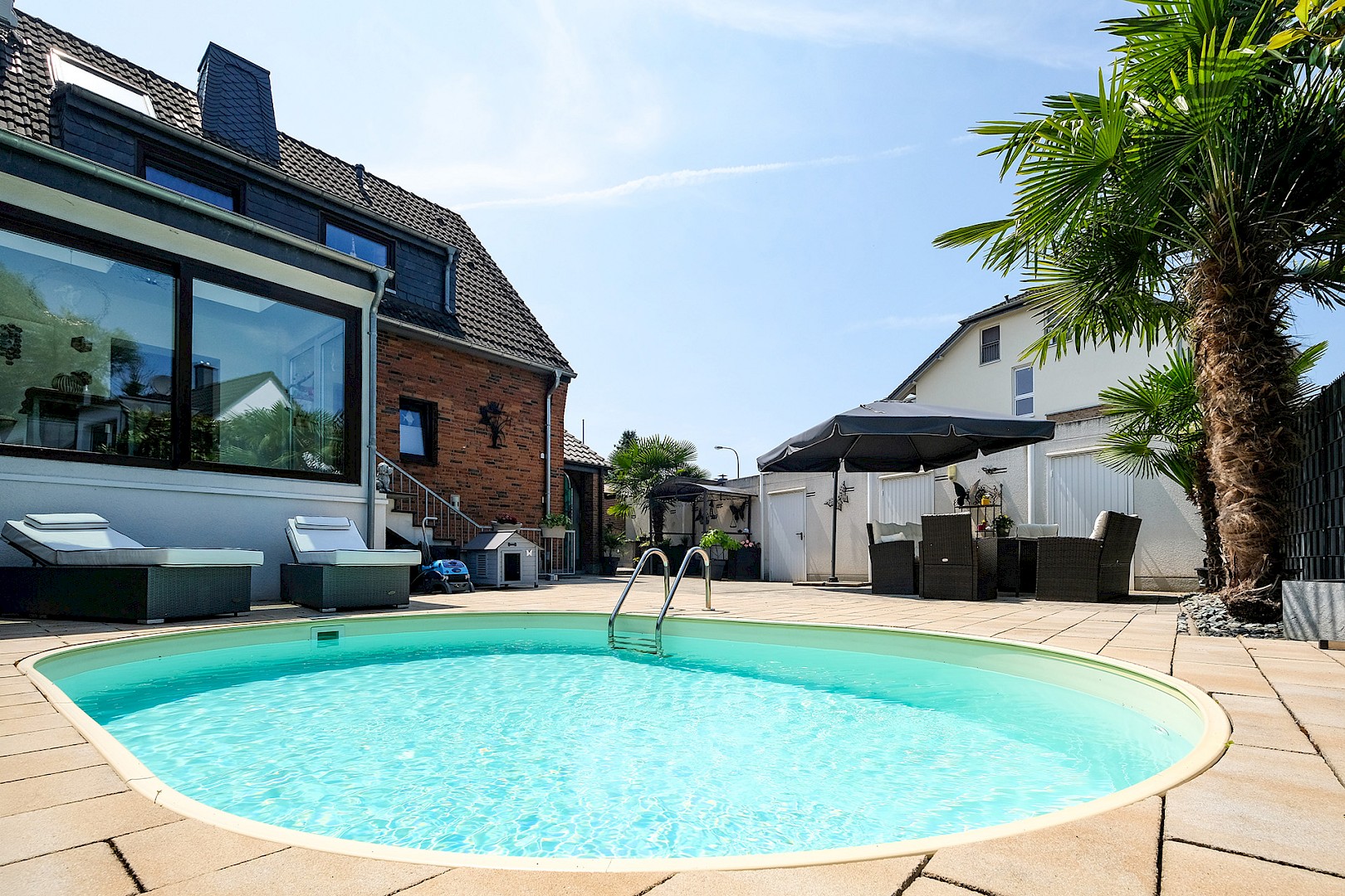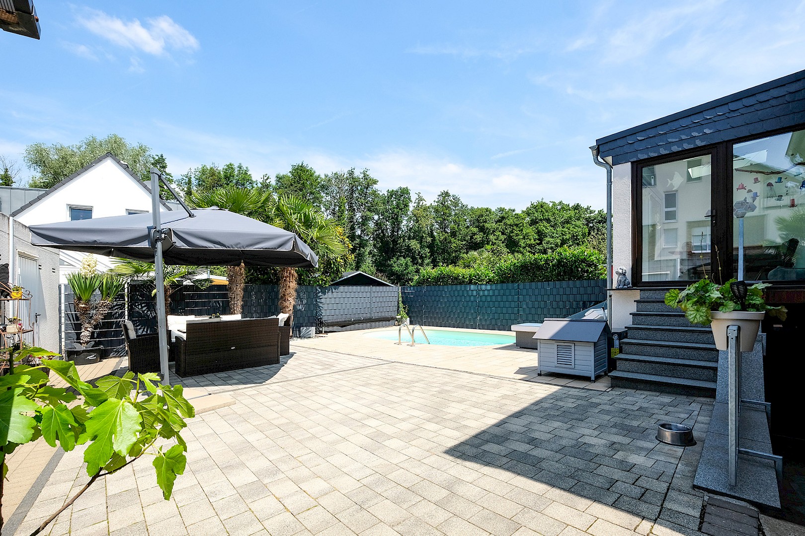 Ein weiteres Highlight ist der gepflegte Außenbereich mit großer Terrasse & beheizbaren Swimming-Pool (erneuerte Pooltechnik (LWP) und Abdeckung 2022) – ideal für entspannte Sommertage im Freien. Eine Wasserenthärtungsanlage, zahlreiche maßgefertigte Einbauschränke und die frisch renovierten Kellerräume mit neuen Böden und Malerarbeiten runden das Gesamtbild ab.