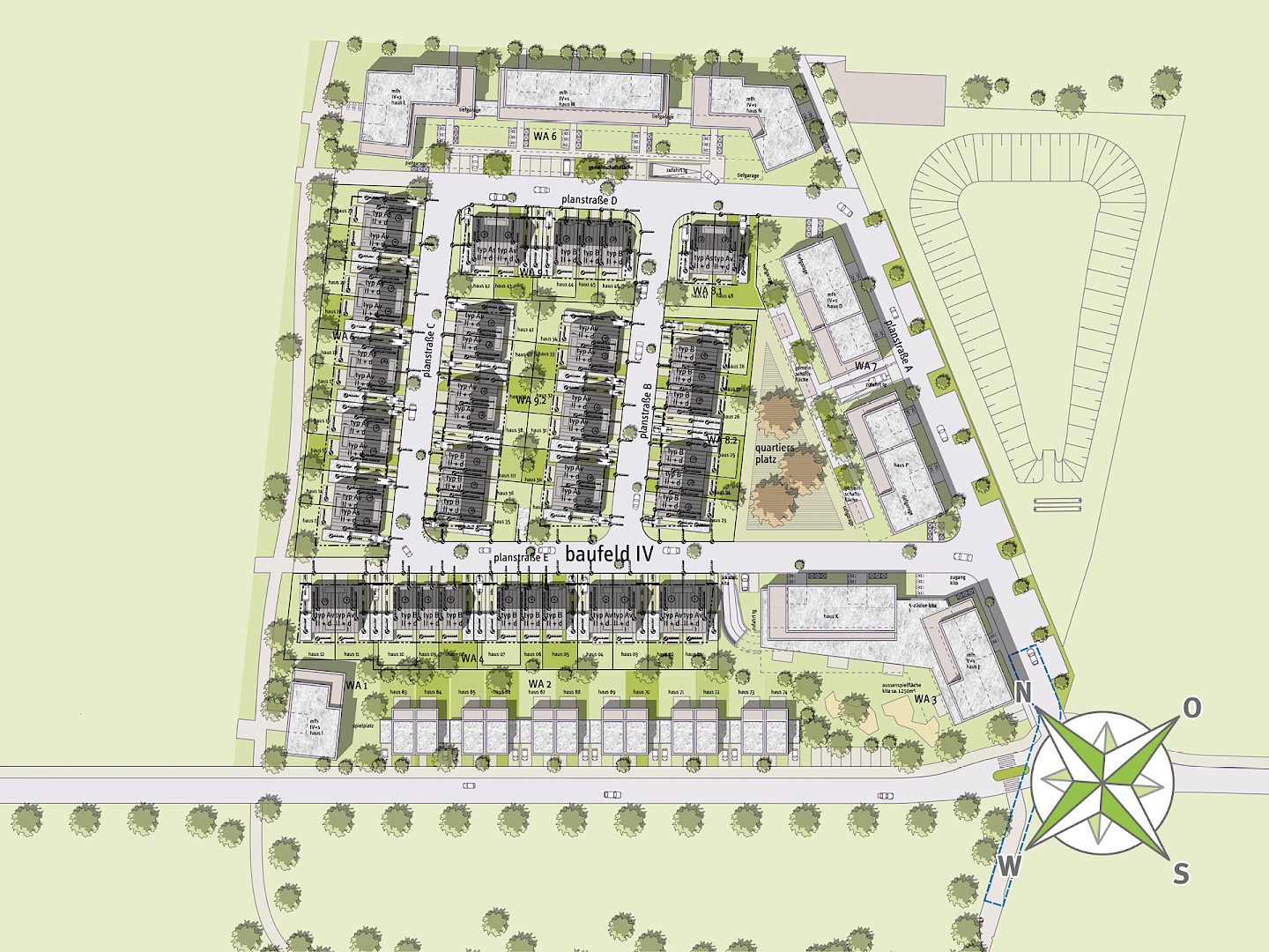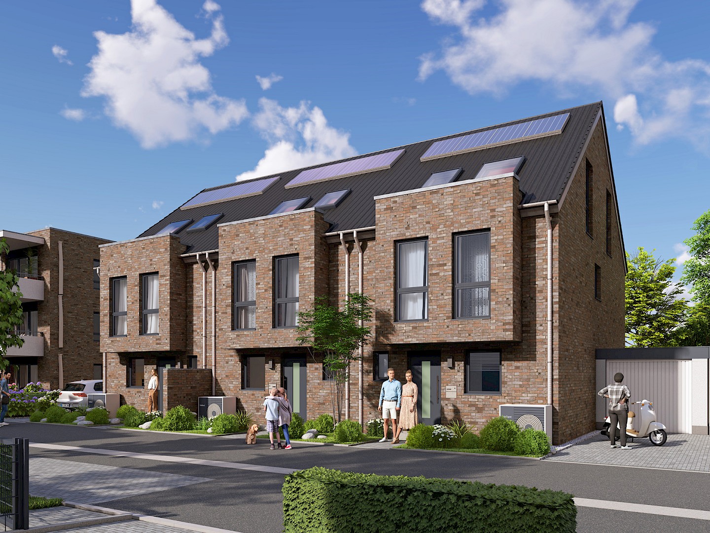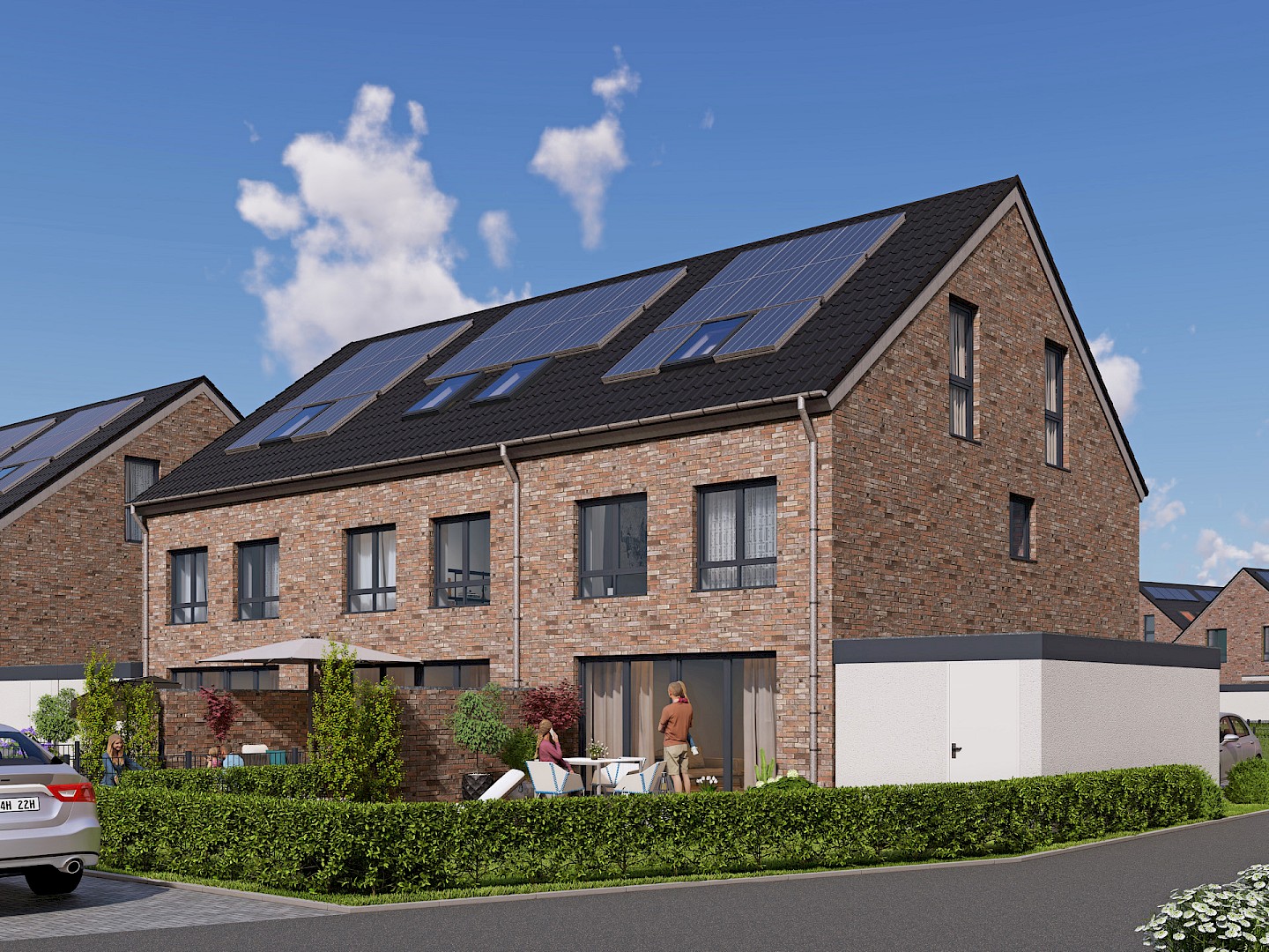 An der Europaallee in Baumberg entsteht ein weiterer Bauabschnitt: In Planung sind 48 Doppel- und Reihenhäuser mit 5 Zimmern und Wohnflächen von ca. 130 Quadratmetern.